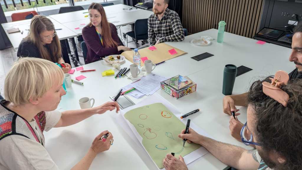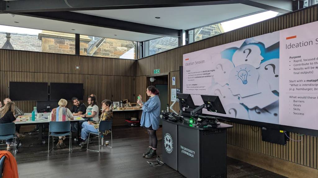 Two workshops were carried out with ‘interdisciplinarians’ from across the three universities. Workshop 1: Mapping Interdisciplinary Research Issues and Game Design kickstarted the project on 27th June 2025. This was hosted by the University of Edinburgh and participants engaged in a variety of activities exploring interdisciplinary research challenges and the types of skills and good practices that can help navigate them. These were mapped on various game elements and through ideation activities participants designed potential game settings, characters, objectives, and mechanics for the game. Findings and material collected from the workshop was then used by the GRID team to develop a game prototype.